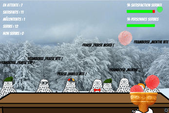 Bug à corriger : Apres un game over, oubli de vider la liste des parfums de glace, il faut donc relancer le jeu pour le recommencer avec les bons paramètres. ( corrigé dans la dernière version "yetiIceCream(correction_bug).zip "
